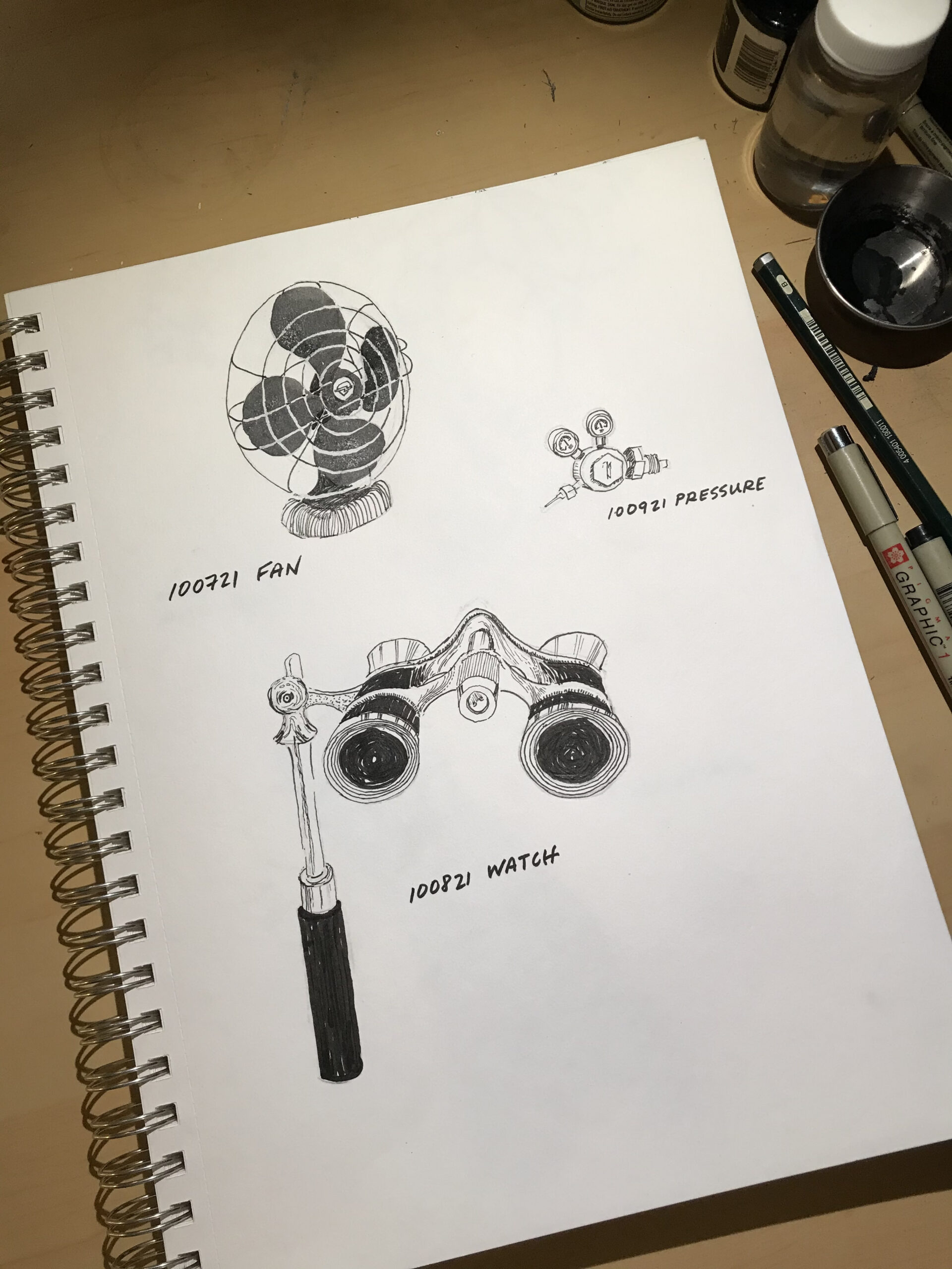 I see the ink wells but I can’t see what ur painting with. I also See the micron pens but those two don’t go together. I’m puzzled. Grandma